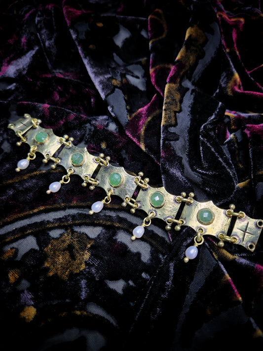 Green Strawberry Quartz and Freshwater Pearl Panel Choker Necklace